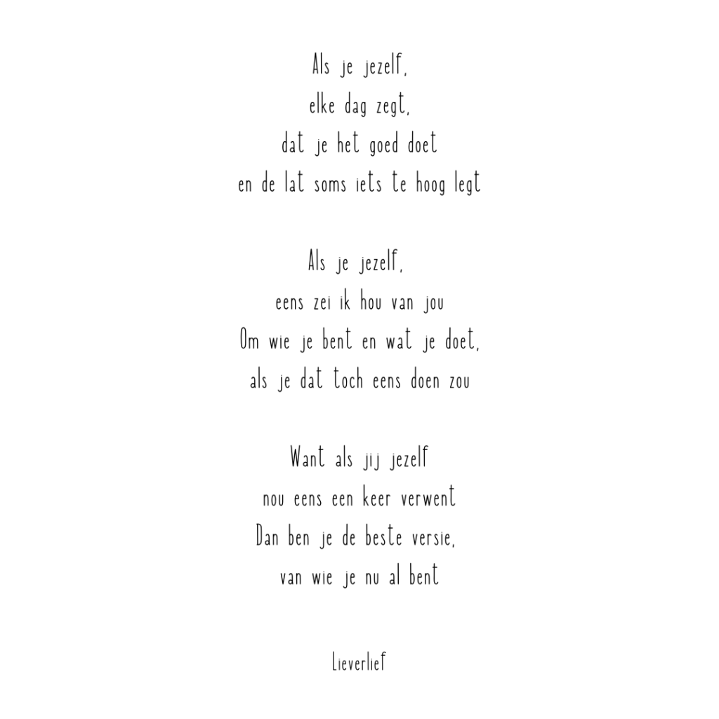 In het gedicht hiernaast beschreef ik precies die zelfliefde die we vaak vergeten.